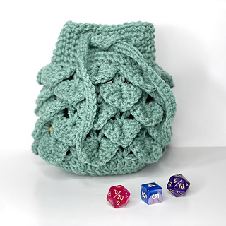 This pattern creates a drawstring bag that is approximately 5” in diameter and 7” tall. These are often called “dice bags” or “Dungeons & Dragons” dice bags, but they can be used to hold anything you wish.