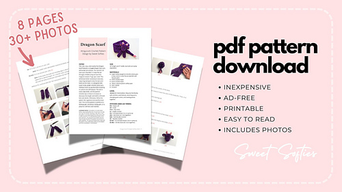 Pattern info page: https://www.sweetsofties.com/2025/11/dragon-scarf.html