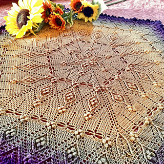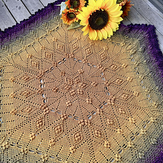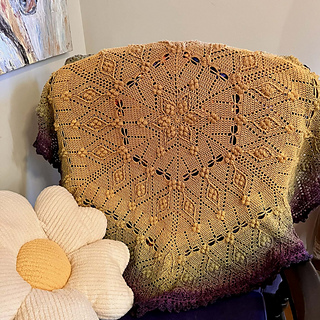 This pattern is a combination of basic stitches, post stitches, popcorn stitches, and touches of filet crochet to create a richly textured, unique hexagon-shaped blanket.