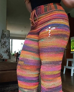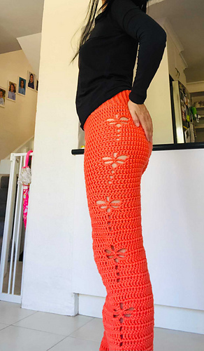 The dragonfly detail down the side adds a little flare to these straight leg pants and the motif can be placed anywhere in the pattern for a more unique look.
