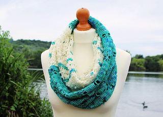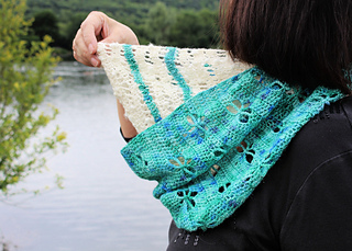 The Dragonfly River Cowl is a light and airy cowl that give it beautiful drape and flow. Perfect for warmer weather or for doubling up as the weather turns cooler.