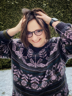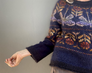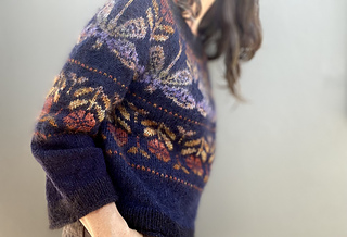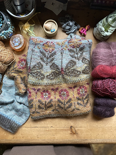 After cutting off the sleeves, smaller flower or beetle patterns can be knitted in.