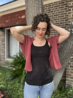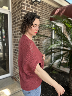 This oversized cardigan is constructed with the back panel first. Working top down you will increase on each row working towards the arms and then decrease under the arm, towards the hip. Front panels are then worked into the shoulder edges of the back panel and are constructed with a matching batwing slope under the arms. Smartly placed slip stitch rows narrow the arm opening, while still allowing for full bust coverage. The piece comes together with seaming the sides and adding a custom-length neckline border.