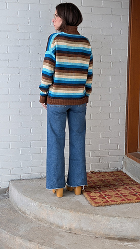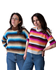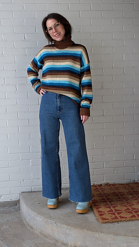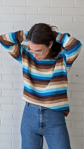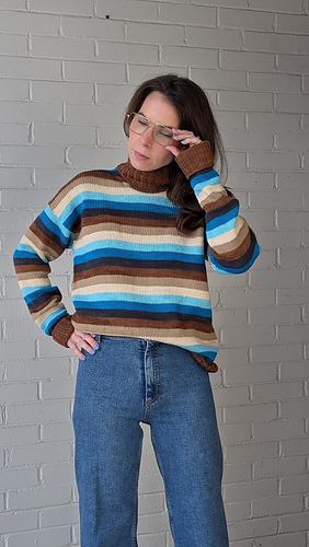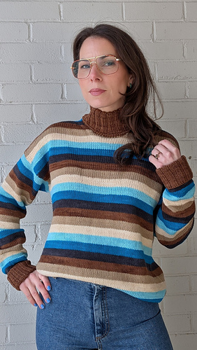 The Dream Team Top combines so many of my favourite things. As a designer I love working with colour. Bonus points for high impact colour achieved in the simplest way, stripes! My first sample features a lush turtleneck and generous folded over ribbed cuffs for a cozy, cold weather staple. To make it more Springtime appropriate I knit a second version in a spicy palette with a crewneck and short sleeves. Gotta love the versatility! The graphic shoulder detail where the stripes intersect at interesting angles has me hooked. This pattern feature all of my dream sweater elements and I couldn’t be happier with it.