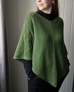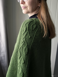 Dreamleaf poncho is a beautiful poncho with a delicate leaf pattern along the arms. The poncho is knitted in the round with increases to create the shape. There are two versions to choose from, one version with German Short Rows to shape the shoulders and one version without short rows. The poncho without the short rows will be a few cm longer in the front and back. The length along the arms is the same on both versions. Two charts are knitted simultaneously throughout the work, one chart for the front and back and one chart for the leaf pattern. The poncho is finished with an i-cord edge and stitches are picked up at the neckline to knit an i-cord edge there as well.