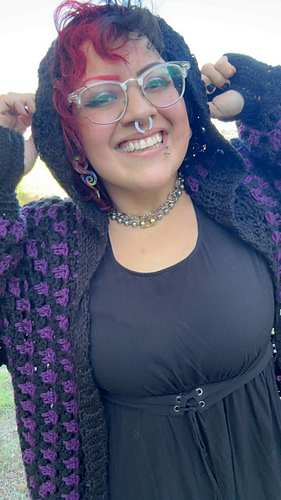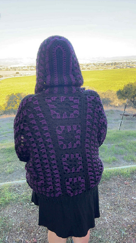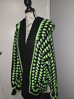 Drapey Hexi Cardi (with an option for a hoodie) worked up in a fun, easy stitch titled the Drip Stitch.