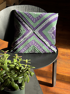 Le coussin terminé peut sembler complexe, mais il se tricote uniquement avec des mailles endroit et envers, des augmentations (accompagnées d’une vidéo explicative) et, en option, un peu de jacquard. Il convient donc parfaitement aux débutants aventureux !