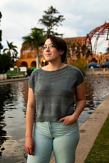 This pattern starts with a split hem, and is worked bottom up. The latvian braid tows are repeated 3 times across the bust, before the boat neck is finished and cap sleeves added. This is an easy pattern to adjust the length of, as well as the sleeves.
