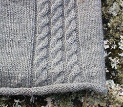 The design features a simple cable pattern, it will work well for a cable beginner. There is a video that shows how you can knit the cables, both with and without a supporting needle.