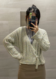 The cardigan has dropped shoulder armholes and an oversized fit so it is recommended to wear it with 20~30 cm of positive ease.