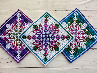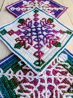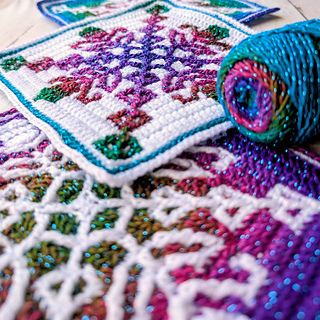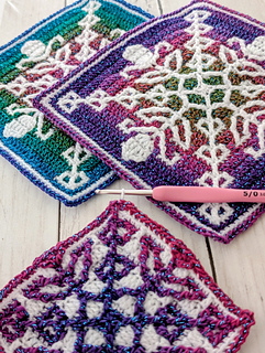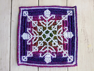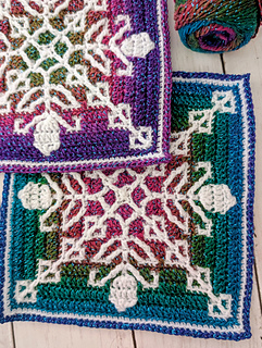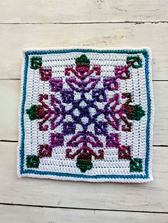 Each square measures 19cm and you’ll need 2 shades of Superfine/3ply yarn - less than 1 skein of each colour per square. If you use a different yarn to make your square, you might require different amounts and your completed square may vary in size.
