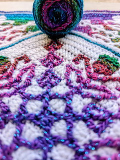 Step into the quiet charm of Dusky Meadow, a mosaic crochet square that captures the gentle hush of twilight settling over a blooming field.