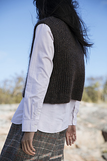The inspiration for the Dynamite slipover comes from the character Stinky, whom Camille Romano finds visually intriguing. She drew on his fluff and rounded little horns, reflected in the reverse stockinette and bobble panel at the centre front of the garment.