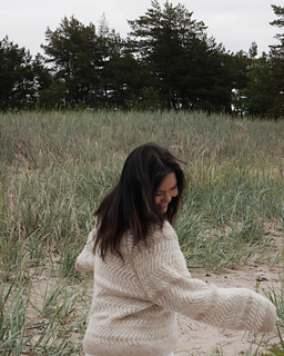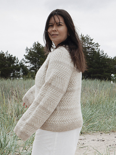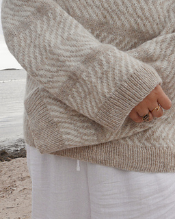 Dyynit Sweater is an all-over colorwork raglan design inspired by the soft, flowing shapes of sand dunes in Hanko. It echoes the natural lines the wind draws on the shore; abstract, earthy and grounding. This sweater features raglan lines with a slipped stitch detail, adding a subtle architectural touch. A piece that invites slowness, warmth and connection to nature.