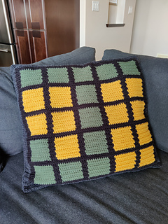 This pattern is a simple colourwork crochet project for Wordle fans. It works up quickly to make a roughly 21” pillow cover. Customisable charts for day mode and dark mode included, as well as all letters of the alphabet (although Q is not great due to the limitations of a 5x5 grid). Pattern is not recommended for the letter Q.