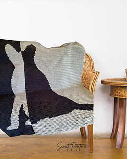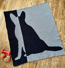 The Ears Up Pup crochet blanket pattern is a fun, unique, modern crochet blanket design. This design features the silhouette of a dog that has a unique and intriguing split that has been very popular in similar designs such as my music and other pet designs. Taking that same popular look and bringing it to animal lovers. If you love pets, be sure to check out my dog days, cat’s meow, purrfect attitude blanket and paw print pillow designs as well.