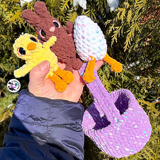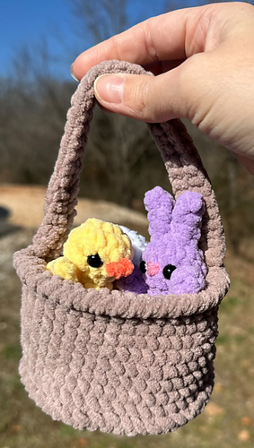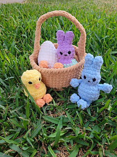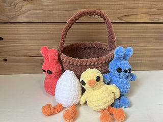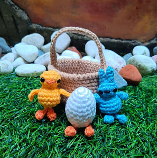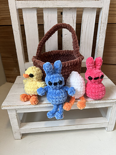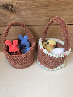 This crochet pattern is a PDF download of Easter Basket Buddies