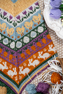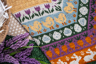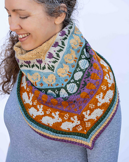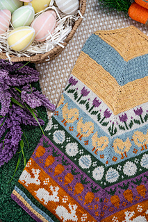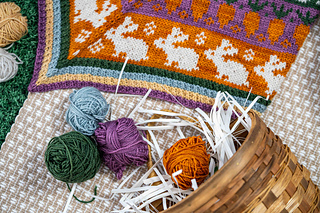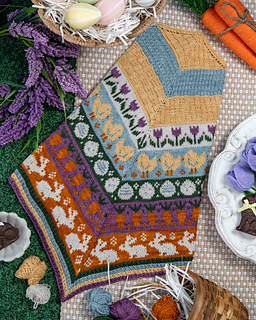 The Easter Basket cowl is a cheerful, spring-inspired knitting pattern filled with delightful seasonal motifs. Playful bunnies, fluffy chicks, blooming tulips, crunchy carrots, and Easter eggs come together to create a charming, storybook feel.