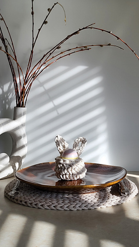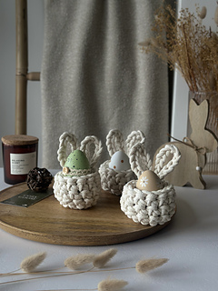A charming crochet egg cup with delicate bunny ears — the perfect touch for spring mornings or Easter celebrations. Its playful yet minimal design brings warmth and handmade charm to any festive table.