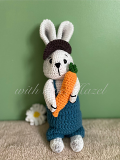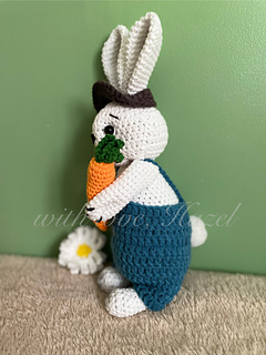 Meet Oakley, the second character in my “Meadow & Friends” crochet series! This charming handcrafted bunny is Meadow’s good friend, always ready for adventure by her side. Standing at 27cm tall, he’s dressed in his little blue dungarees, cosy half cap, and holding a carrot, his favourite snack! With his playful nature and curious spirit, Oakley loves exploring the meadow, collecting carrots, and keeping Meadow company on sunny picnics. Every stitch is made with love, from his fluffy tail to his embroidered features, making him the perfect cuddly companion, keepsake, or gift.