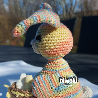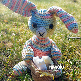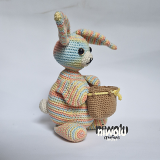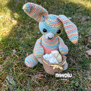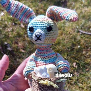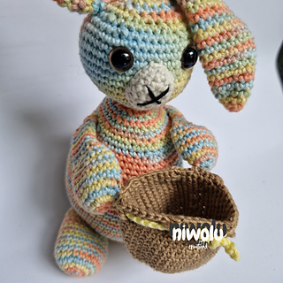 Need a cute wrapping for a little Easter treat? This bunny with its basket which is perfect to hold a little treat. Crochet your own adorable little bunny with a basket ready to put a little treat into. I have included a tip on how to make a bigger basket too.