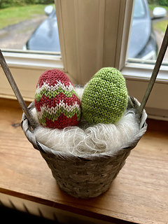 These adorable Easter Eggs are quick and easy to knit. They use very little yarn, making them a great project for using up your stash. Each finished egg measures approximately 7.5 cm tall and 6 cm in circumference. They make excellent Easter decorations or toys.