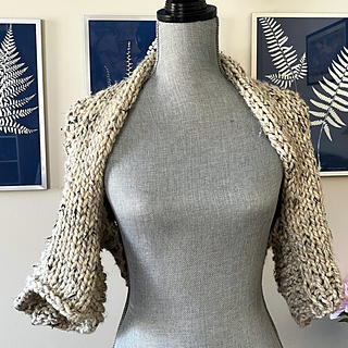 Gauge: US 17 (12.75 mm) needles: 7 sts x 11 rows in stockinette = 4” (10 cm) square