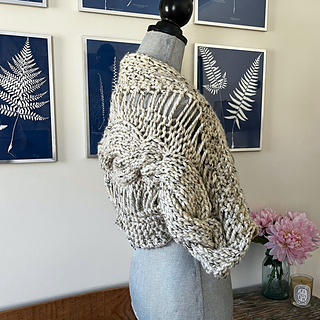 Welcome CABLE LOVER, I’m so glad you’re here! This piece knits up lightning fast with big needles, bulky yarn, and an easy pattern repeat that combines cozy texture with a ton of visual interest. I kept the 3/4” sleeves open for a hint of boho, but you can always knit them longer. Please don’t skimp on blocking, the stitches will appreciate good stretching out and you will love the finished garment… PROMISE!