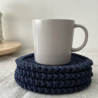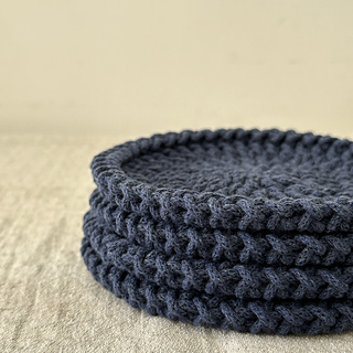 A set of simple crochet coasters with a clean, textured design — understated pieces that fit seamlessly into any modern home.