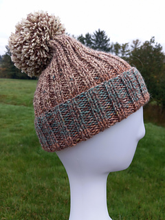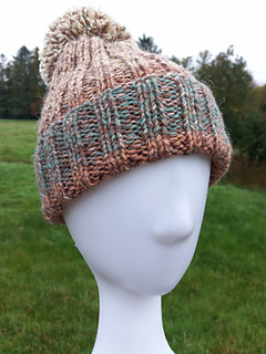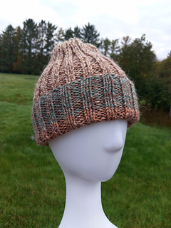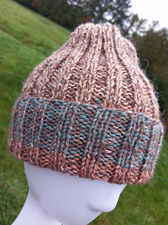 Super easy ribbed hat pattern made on 2 needles, worked flat. Uses Aran weight yarn or 2 strands of DK on 5mm (can also be worked on 4.5mm).