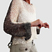 A staggered eyelet pattern, knitted from the bottom up and in the round. The middle part of the body is slightly decreased for a bit of shaping. The front and back upper part of the body/armhole section are knitted flat from the armholes on up to the neckline. Only the shoulders do get seamed or if you prefer, a 3 needle bind off.