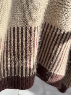Yarn alternative 3: 1 strand of Sandnes Double Sunday (50g=108m). You will need: 6 (8) 8 (8) 9 (9) 10 (11) balls of the base colour and 3 (3) 4 (4) 4 (4) 4 (5) balls of the contrast colour. HELD TOGETHER with 1 strand of Sandnes Tynn Silk Mohair (25g=212m). You will need: 3 (4) 4 (4) 5 (5) 5 (5) balls of the base colour and 2 (2) 2 (2) 2 (2) 2 (3) balls of the contrast colour.