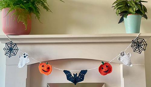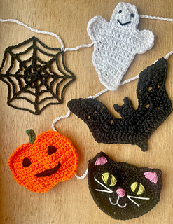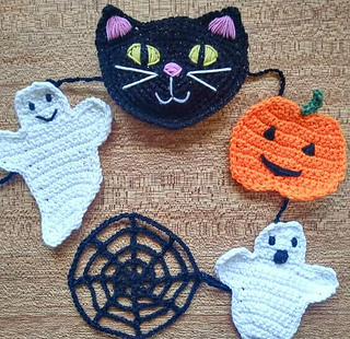 Choose your own combination of pumpkin, ghost, spider web & cat motifs and make a garland or bunting of any length.