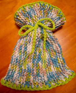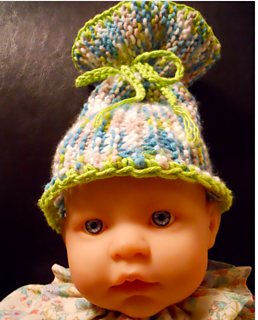 This is a pattern I picked up some years ago when knitting hats in a group for newborns. It is perfect for a new knitter because it is knit flat then stitched up at the end. It can also be easily adapted for crochet.
