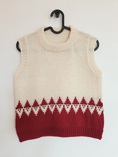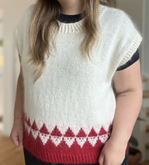 The Easy Santa Slipover is a Christmas slipover worked in a stockinette stitch. The slipover is worked from the top down. The simple bi-colour pattern is only worked in the round. This project is the perfect opportunity to learn how to work with two colours at the same time.