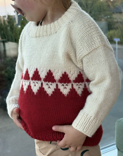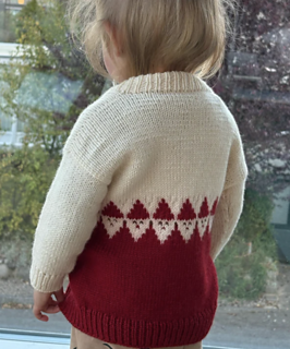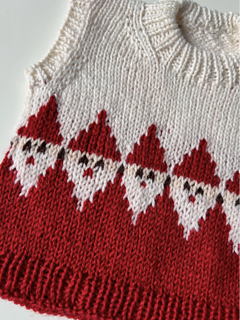 The Easy Santa Sweater is a Christmas sweater worked in a stockinette stitch. The sweater is worked from the top down. Sleeves and ribbed edges are added at the end. The simple two-colour pattern is only worked in the round. This project is the perfect opportunity to learn how to work with two colours at the same time.