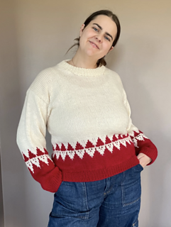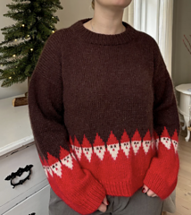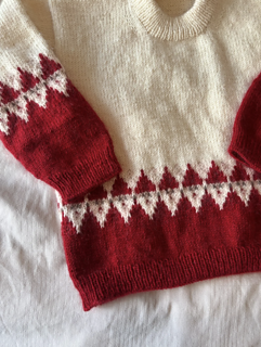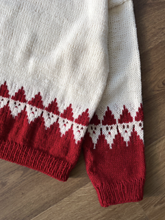 The Easy Santa Sweater is a Christmas sweater worked in a stockinette stitch. The sweater is worked from the top down. Sleeves and ribbed edges are added at the end. The simple bi-colour pattern is only worked in the round. This project is the perfect opportunity to learn how to work with two colours at the same time.