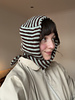 This scoodie is knit top down, featuring an i-cord cast-on and edge stitches for a smooth and rounded fit. The scarf sections are worked separately, working both increases and decreases alongside a boosted i-cord edge for a stretchier fit. The scarf can be worked in 3 sizes for a shorter or longer length.