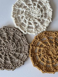 The Easy Spider Web Coaster is a quick and relaxing make — ideal for beginners who want to try crocheting with thicker cotton cord and create a stylish home décor accent.