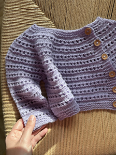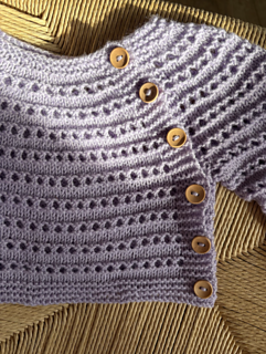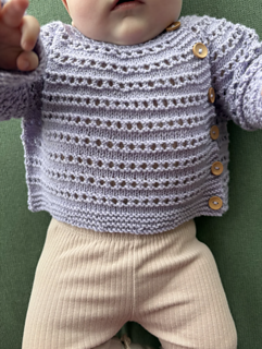The Easy Spring Cardigan is a beautiful and practical baby cardigan. The cardigan is worked from the top down in a simple hole pattern.
