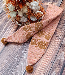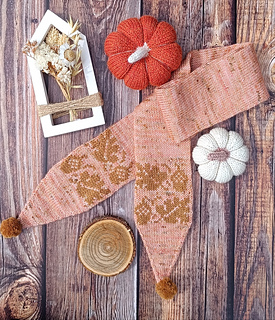 L’écharpe Loulou se tricote en rond, d’une pointe à l’autre, et présente un élégant motif automnal en jacquard au-dessus des pointes. Fine et de petite longueur, elle se porte facilement et apporte une touche chaleureuse aux journées fraîches d’automne. L’écharpe mesure 7 cm de large et 103 cm de long mais vous pouvez facilement augmenter ou réduire cette longueur si vous le souhaitez. Le patron comprend des explications détaillées ainsi que des liens vers des vidéos pour vous accompagner dans les différentes techniques.
