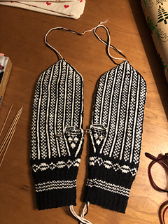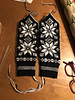 The influence of Norwegian Selbu rose mittens very likely spread to Iceland at some point. But Icelandic knitters also derived their own versions of the eight-petal rose pattern in many different ways. Here is a pair by an unknown knitter with dark brown as the main color and white used as the contrasting color. White is used for stripes in the cuft as well as a band of pattern just above the cuff. The palm of the mitten is then patterned with vertien stripes and the back of the mitten with eight-petal roses. The patterned thumbs are knitted with a gusset. A project for those who want to tackle the classic patterns and thumb gusset.