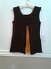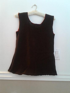 Lace panel added to back section pleat. This is where you can use up your favorite color that you can’t part with since it only uses less then 35 grams. Crocheted edging in contrasting color to give my pizzazz to this finger weight summer sleeveless top. Nice decorative edging at bottom hem.