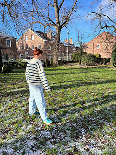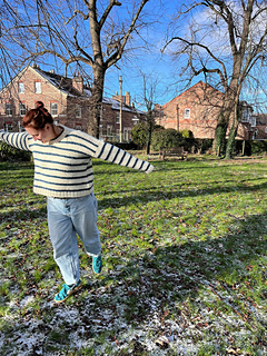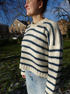 The Eden Sweater is a drop-shoulder sweater which is suitable for advanced beginner knitters. It is a striped sweater design with a little something something and uses a simple slip stitch for additional detail. It is size inclusive design with an intended 20 cm of positive ease and sizes fit a chest size of 74 cm - 155 cm. The pattern includes instructions for both a seamless and seamed sweater construction. The final fit for these construction methods is the same. It is written simply and is a lovely project for both beginner and advanced knitters.
