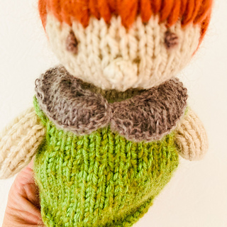 This mini doll has been knitted with 3.5 & 3.75 mm straight needles.