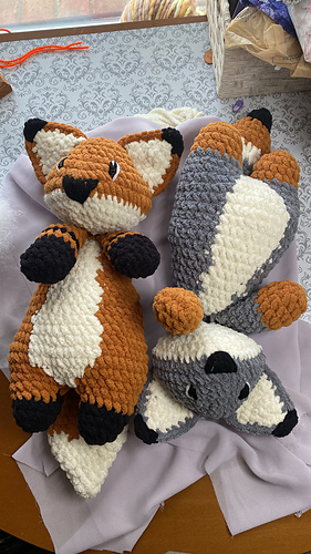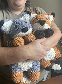 It takes about a full skein of the main color, and a decent amount of the contrast color. If you were going to make a solid animal, it would take about a skein and a half.