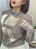 This sweater is worked bottom-up. The body and sleeves are knitted in the round to the underarm, then divided and worked flat to create classic set-in sleeves. The construction provides a tailored shoulder line while maintaining the relaxed elasticity of deep ribbing.