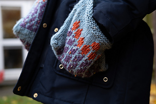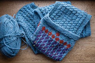 Requires the ability to knit stranded colorwork, managing floats, and to use duplicate stitch. Suitable for intermediate knitters.