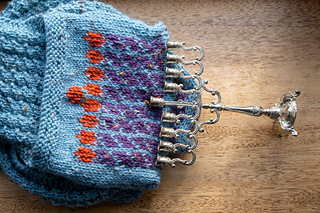 Show off your Hanukkah lights wherever you go with this bright and bold scarf! The diagonal lines of Hanukkah candles shine in both colorwork and texture, creating an easy-to-knit design that will light up those dark winter nights.