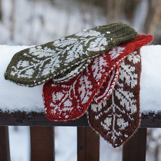 When finishing, block the mittens to even out the stranded knitting and shape them into the desired fit. The mittens may also be felted a bit, to create extra warmth.